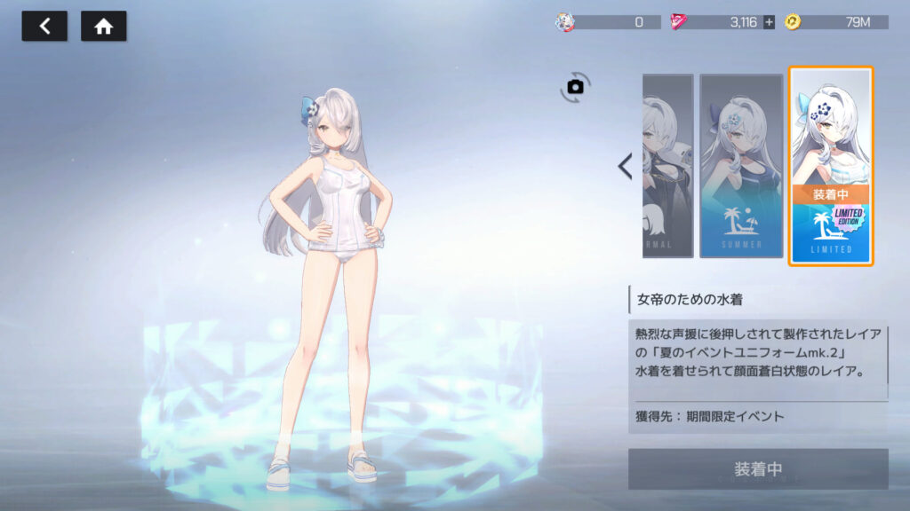 レイアのLR報酬白スク水ゲット