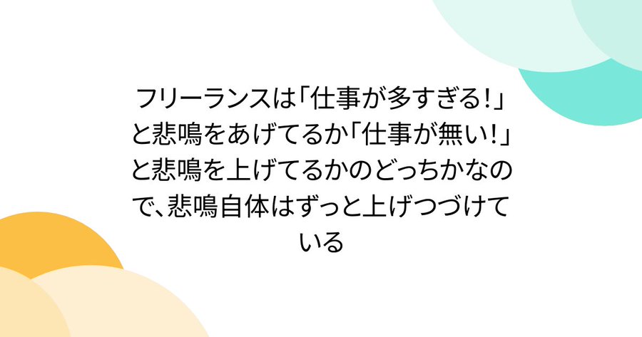 フリーランスは「仕事が多すぎる!」と悲鳴をあげてるか「仕事が無い!」と悲鳴を上げてるかのどっちかなので、悲鳴自体はずっと上げつづけている