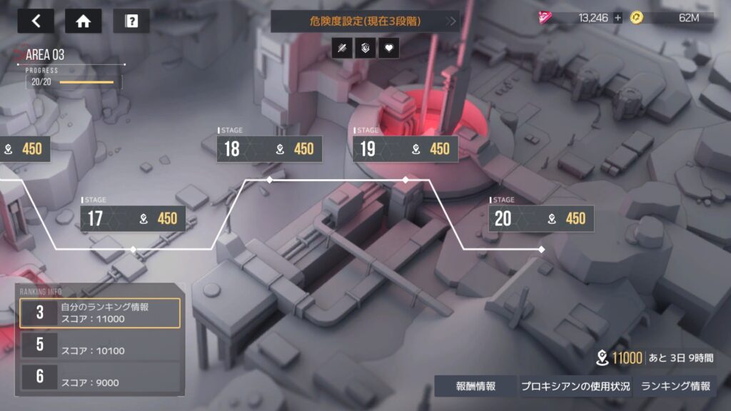 ひとまず全ステージ危険度3でのSSスコアを取って、キャラボーナスは4編成20キャラの2,000でスコア11,000、暫定3位 コンクエストは理論値で1位取っても報酬はドミニオンと変わらずしょぼいし、タイパ的にはここら辺が妥当なところか
