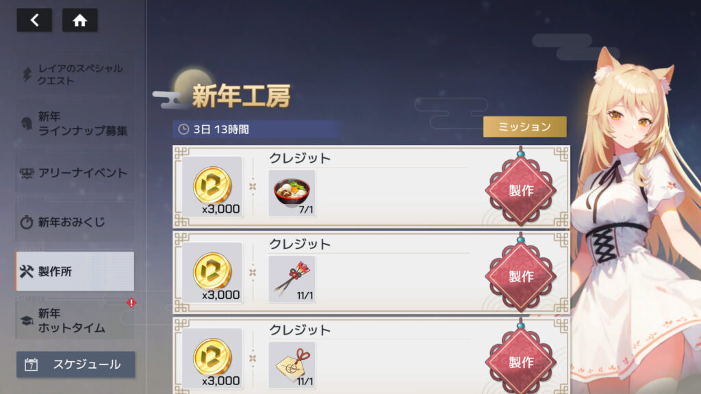 イベント「新年工房」、クレジット以外の報酬を全部貰った