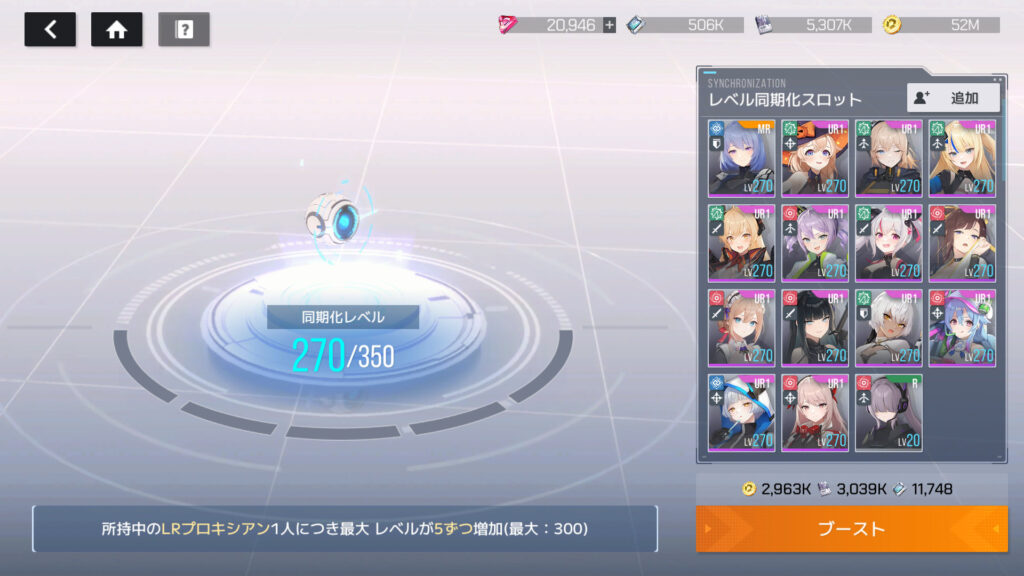 SRプロキシアンは常時同期はやめた。コンクエストでLv.1で戦わせるか、都度同期して戦闘が終わったら同期解除するか、後で考える
