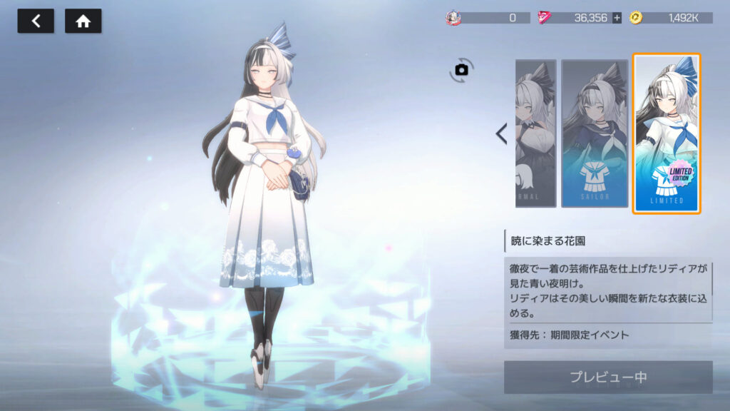 リディアのLR報酬衣装とXR2報酬衣装