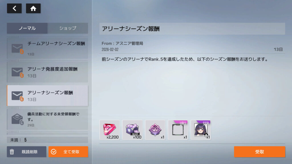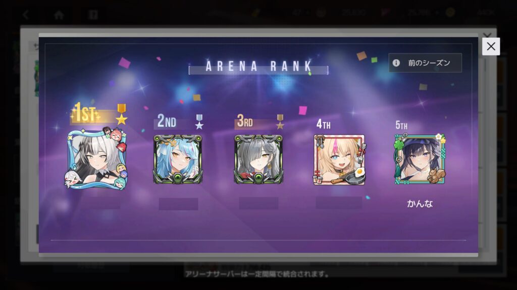 アリーナ5位