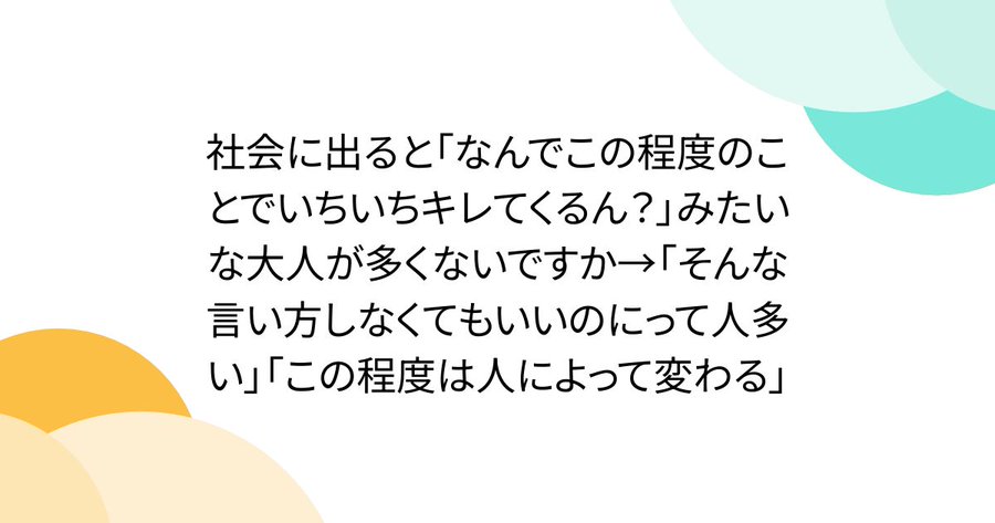 社会に出ると「なんでこの程度のことでいちいちキレてくるん?」みたいな大人が多くないですか→「そんな言い方しなくてもいいのにって人多い」「この程度は人によって変わる」