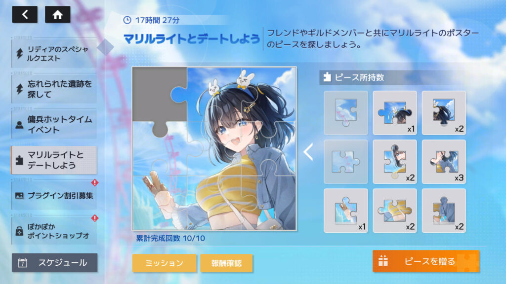 イベント「マリルライトとデートしよう」完了。最後に揃った状態でスクショ撮ろうと思ったら、左上だけ足りなかった