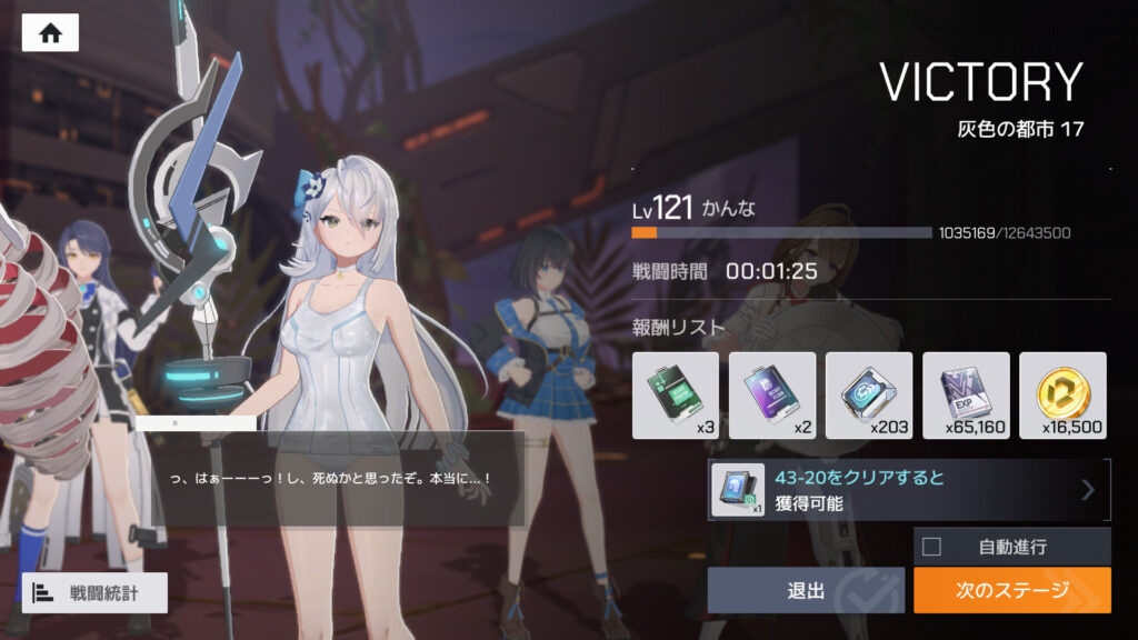 冒険43-17クリア。Lv.3弱体化。きつかったけど、メアとかなたの装備を究極技5セットにして、メアの装備をレイアに持たせたら何とかなった