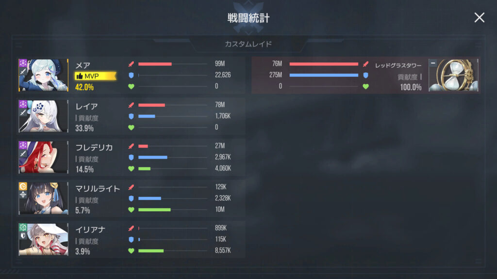 カスタムレイドLv.360カスタムなし、かなたの代わりにレイアを入れたら、誰も死なずに記録を少し更新