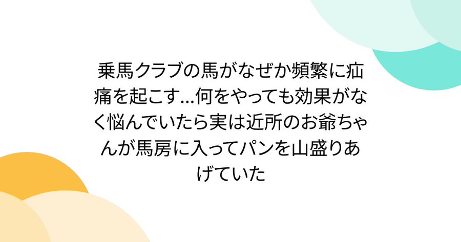 乗馬クラブの馬がなぜか頻繁に疝痛を起こす…何をやっても効果がなく悩んでいたら実は近所のお爺ちゃんが馬房に入ってパンを山盛りあげていた