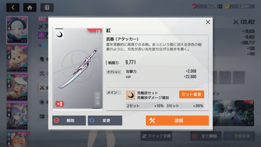 装備に超越ボタン付いてるな…