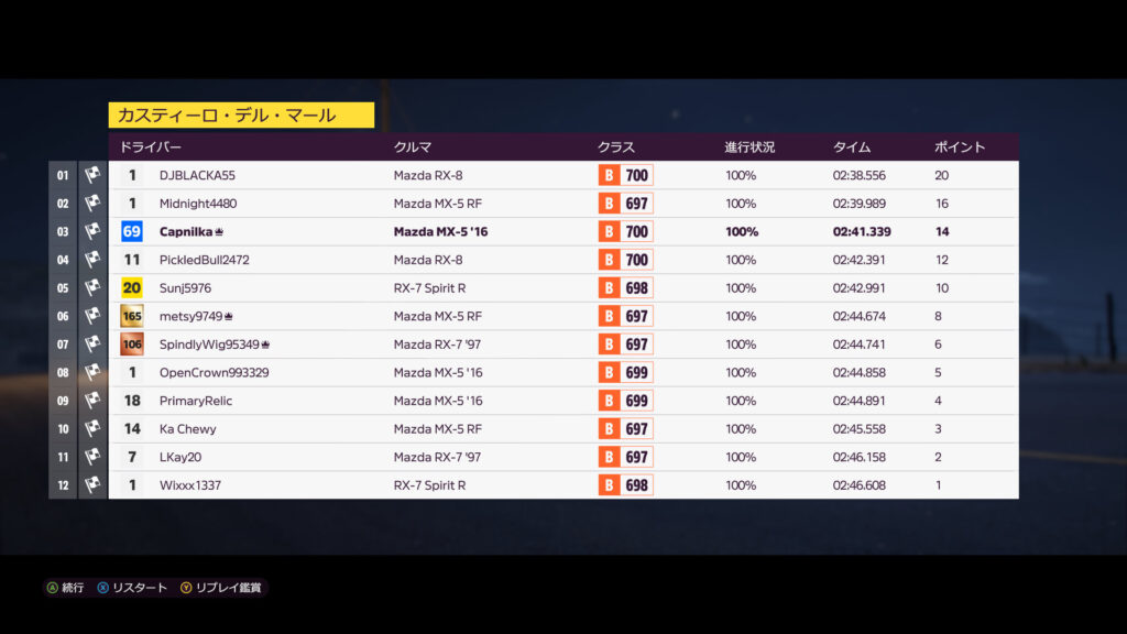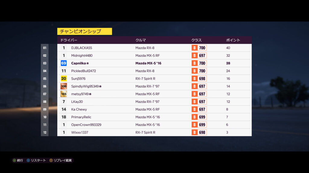 2戦目は3位でトップと12ポイント差。つか、1位2位は2戦とも同じなんだよな…