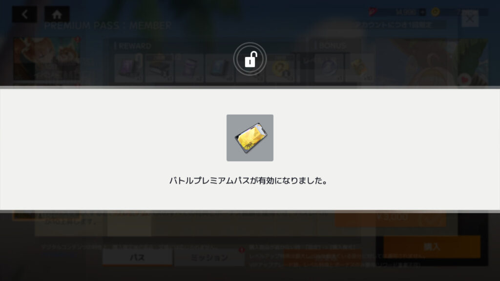 バトルパスメンバー購入。累計課金額155,600円