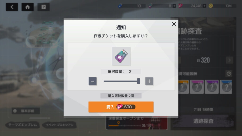 遺跡探査の追加作戦チケットの購入はやめる。シーズン1は毎日購入したけど、貰えるエンブレムがしょぼすぎて、さすがにコスパが悪い