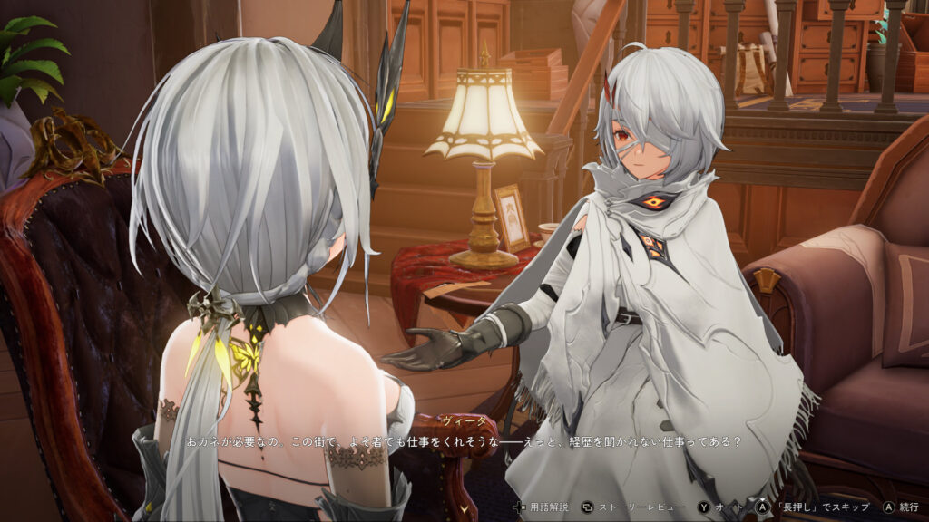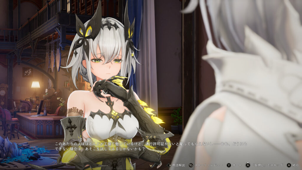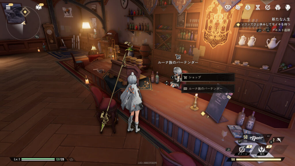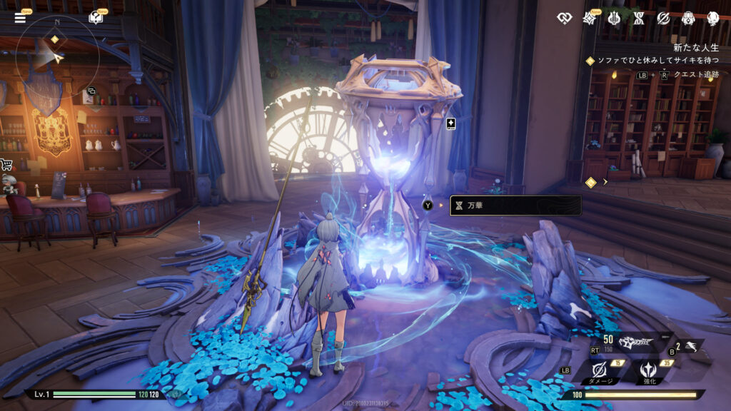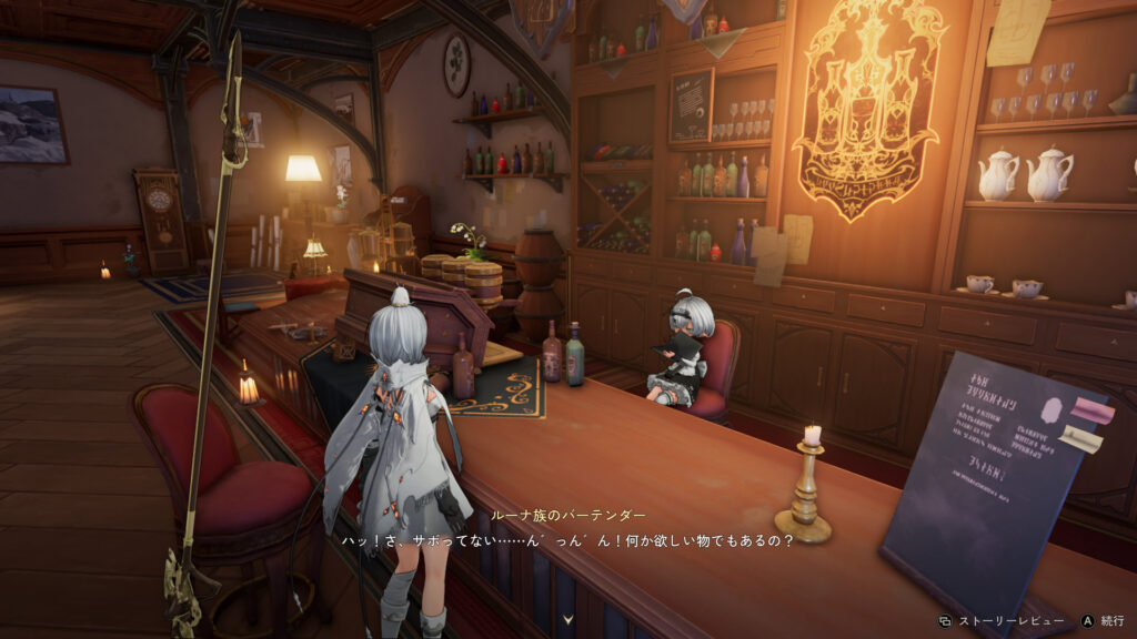 メニューからは開けない画面で、ワールド内の特定の場所に行って特定のオブジェクトにインタラクトしないと開けない画面ってのは、何かのゲームであったような記憶がある。何のゲームだったかは忘れたけど。クリア済みのストーリーがそこでしか見れないようになってた。これも不便っちゃ不便だったんだけど。まぁ過去を振り返る演出としてはありだったかな