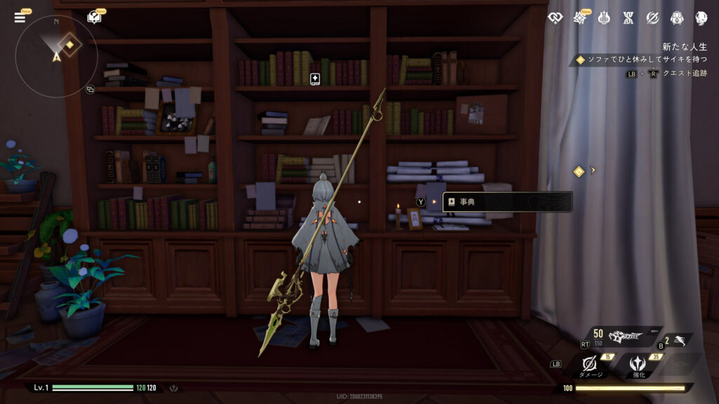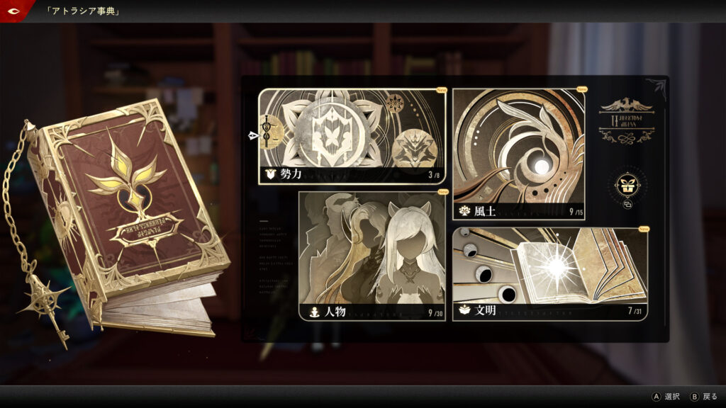 事典は普通に事典か。こういう、メニューから普通に開ける画面を、ゲーム内オブジェクトからのインタラクトでも開けるようにするのは、何か意味があるんかな…。メニューから普通に開けばいいよな