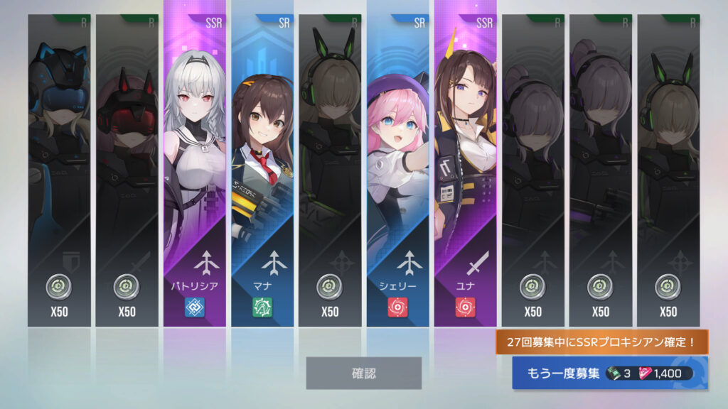 10連でパトリシア16枚目、パトリシアXR1、ユナ15枚目