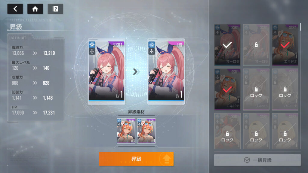 エキドナの余りは、SSR1×2枚でそろそろ嵩張ってきたんで、素材にする
