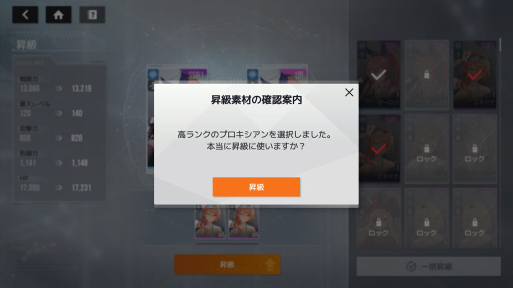 素材がSSRプロキシアンだと、確認画面が出るらしい