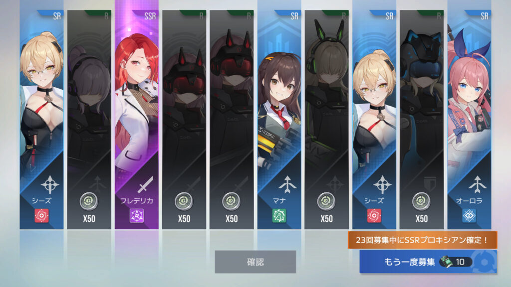 10連でフレデリカ11枚目、フレデリカXR1。一般募集での上位コアは10回目