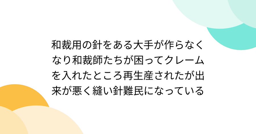 リプコメでも言われてるけど、和裁師が安く買い叩いた結果がこれだろう。相応の値段を支払わないから誰も作りたがらず供給が途切れてるんだし、自業自得