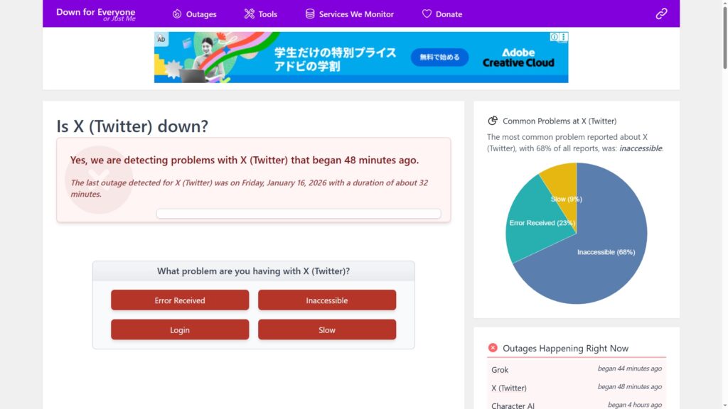 ツイッター落ちてんのか…