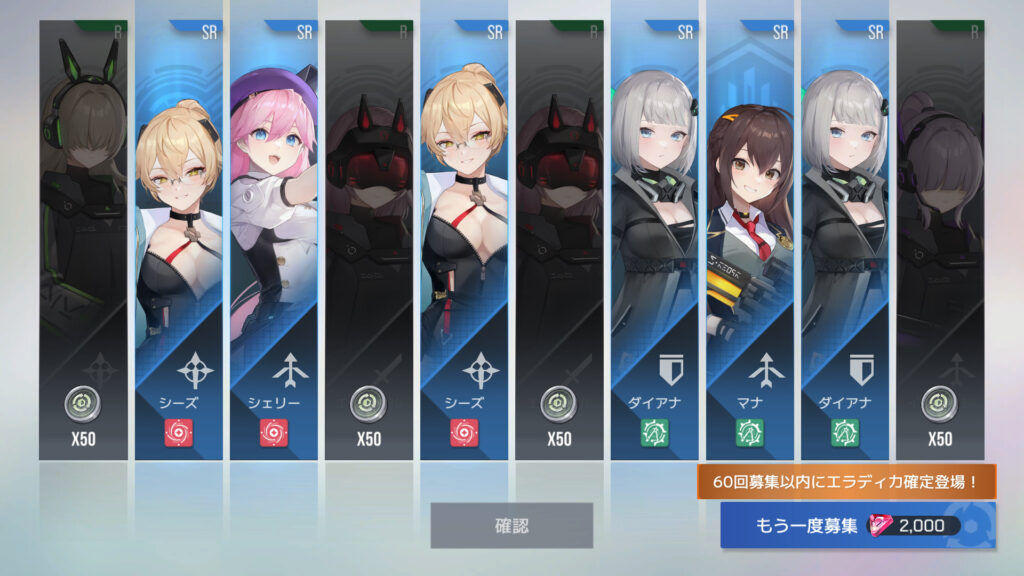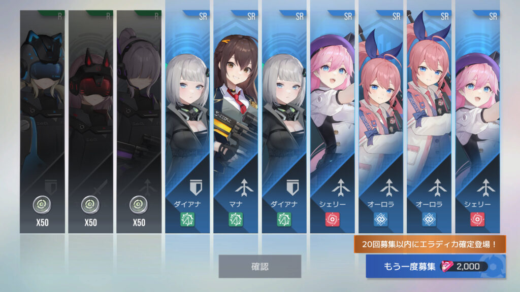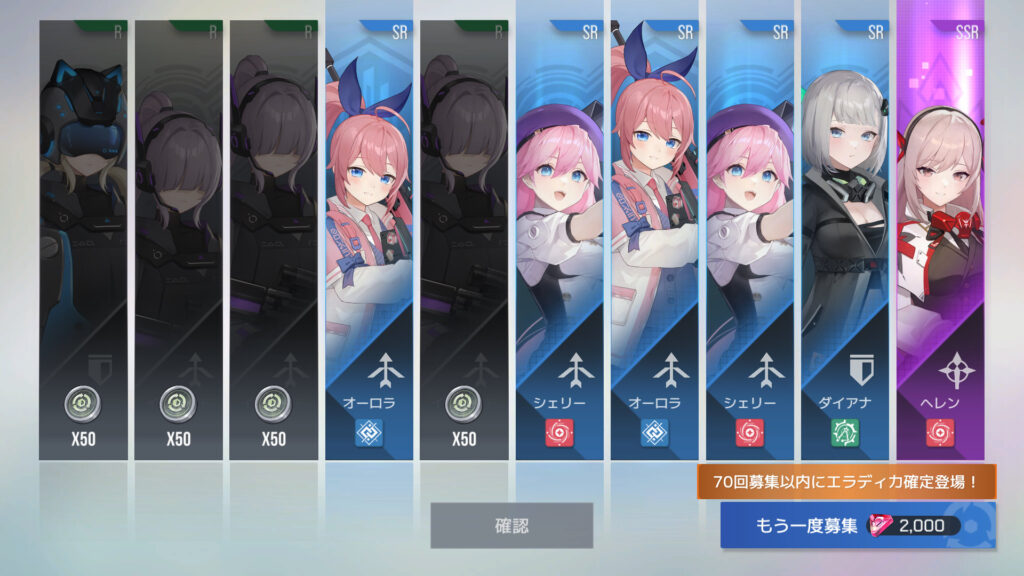 一般募集20連でアイレン11枚目、イリアナ6枚目