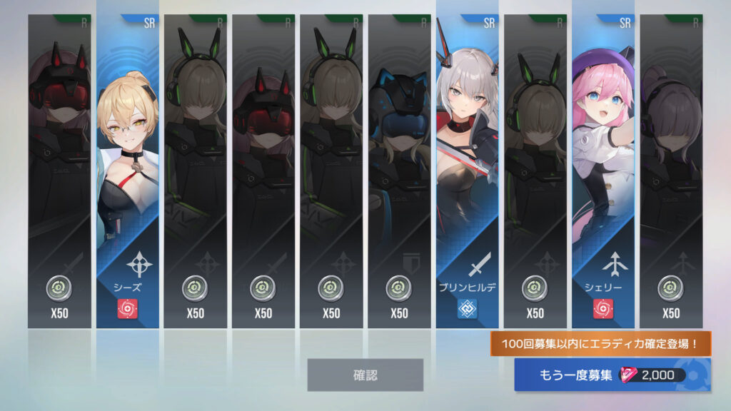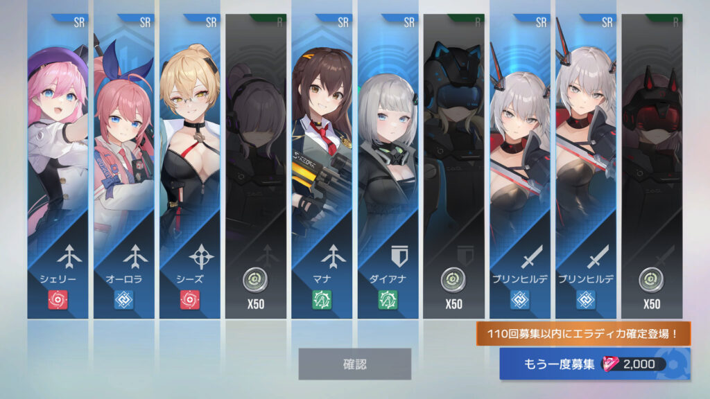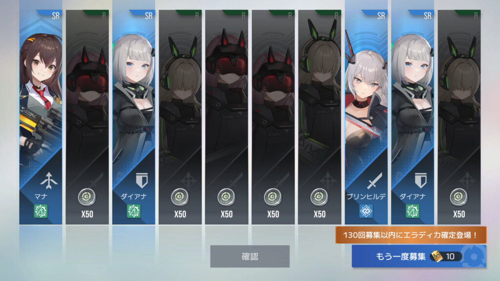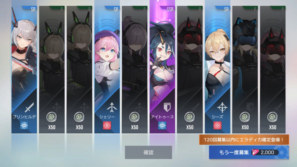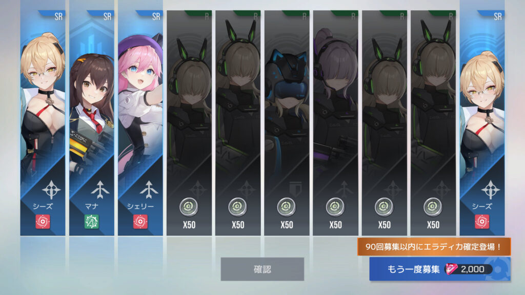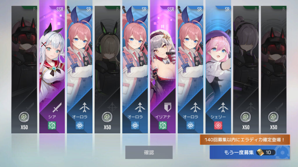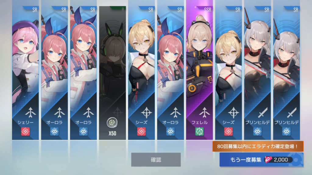 70連でフェリル4枚目。30連でSSR確定ってわけでもないらしい