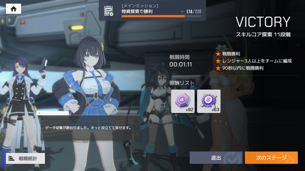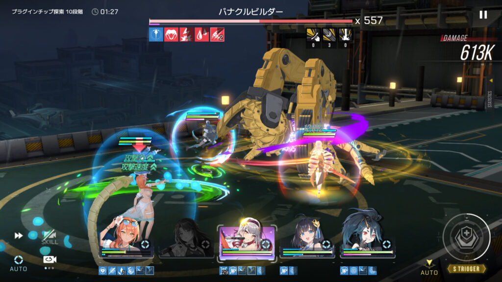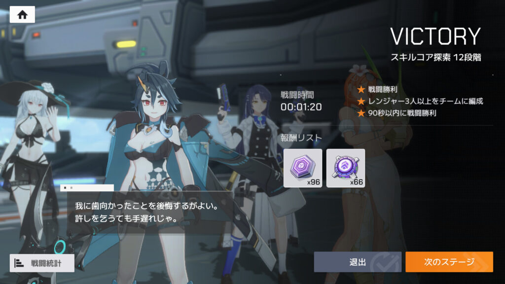 単体特化ってことで、カラ11段階をやってみたところ、装備がいまいちな状態でもけっこういい線行った。途中で究極技を連続でぶっぱしてるように見えたのは、たぶんパッシブのブーストチップセットだな