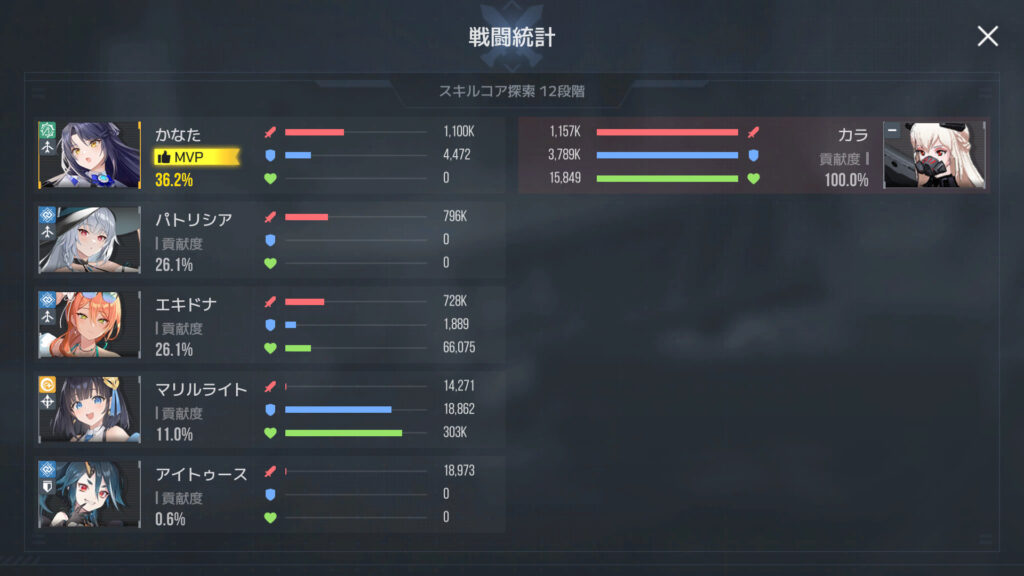 カラ12段階ではかなたがMVP。強いなぁ