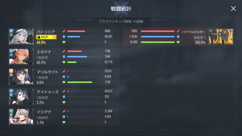 バナクルビルダー10段階は、2戦連続でかなたがやられてダメだった。3戦目は代わりにパトリシアを入れて、エキドナが終盤死んだもののなんとかクリア