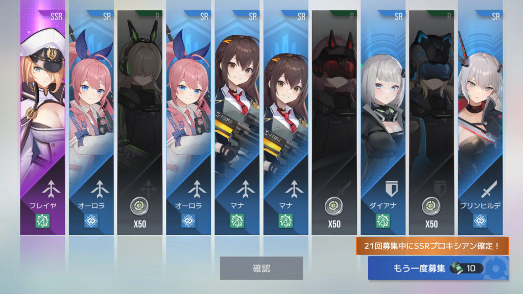 一般募集30連でフレイヤ2枚目、フレイヤSSR1