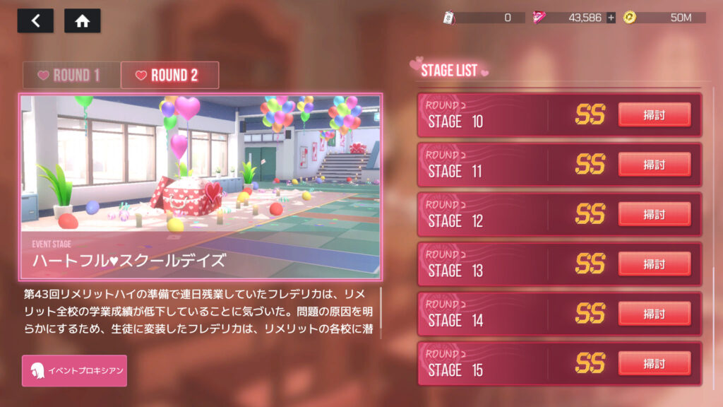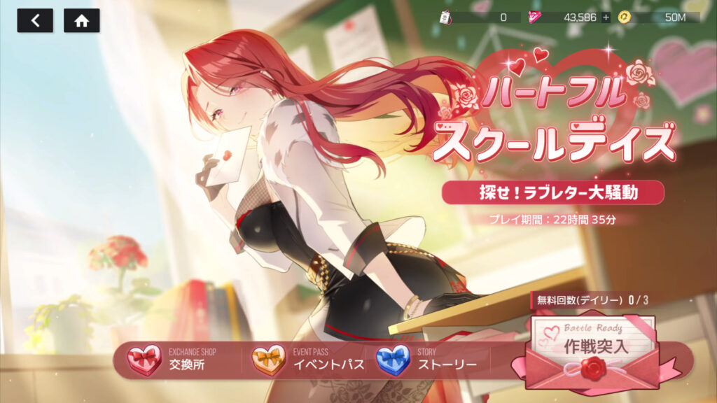 忘れてたけど、イベント「ハートフルスクールデイズ 探せ!ラブレター大騒動」クリア