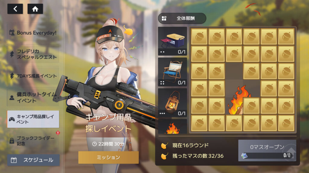 「キャンプ用品探しイベント」は15ラウンドまでクリアしたところで終了
