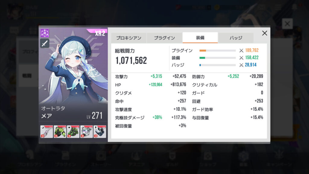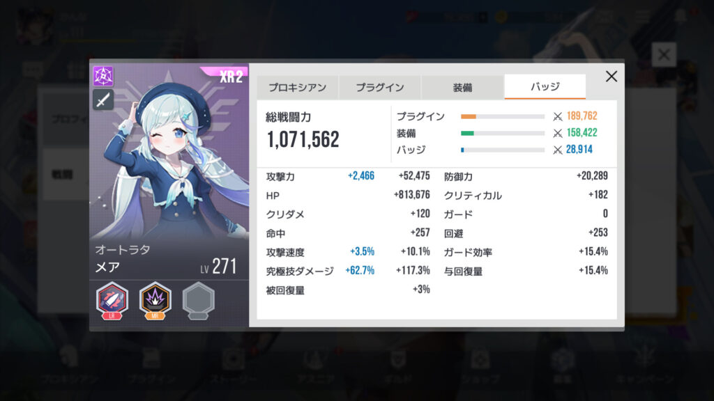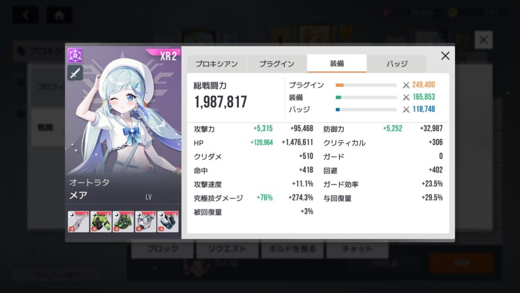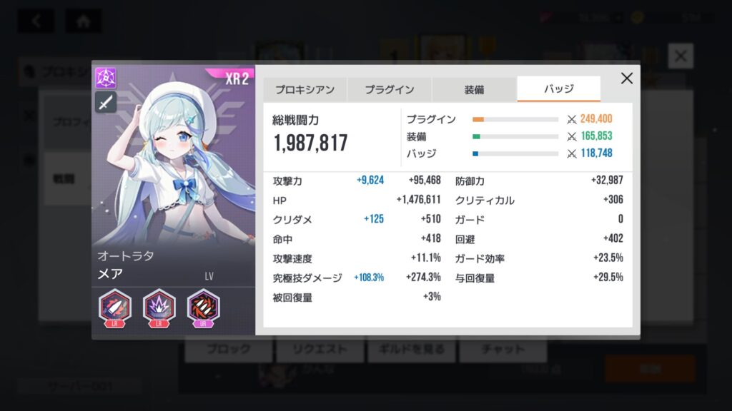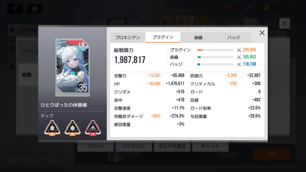 自分よりレベルちょい上のランカーさん。プラグインチップ、装備、バッジはそこそこ揃ってるけど、総戦闘力差はそれほど大きくない。レベル差がいちばん影響するってことで確定か