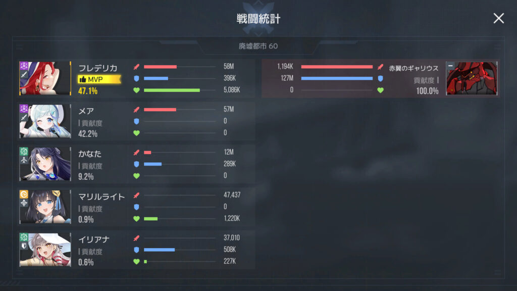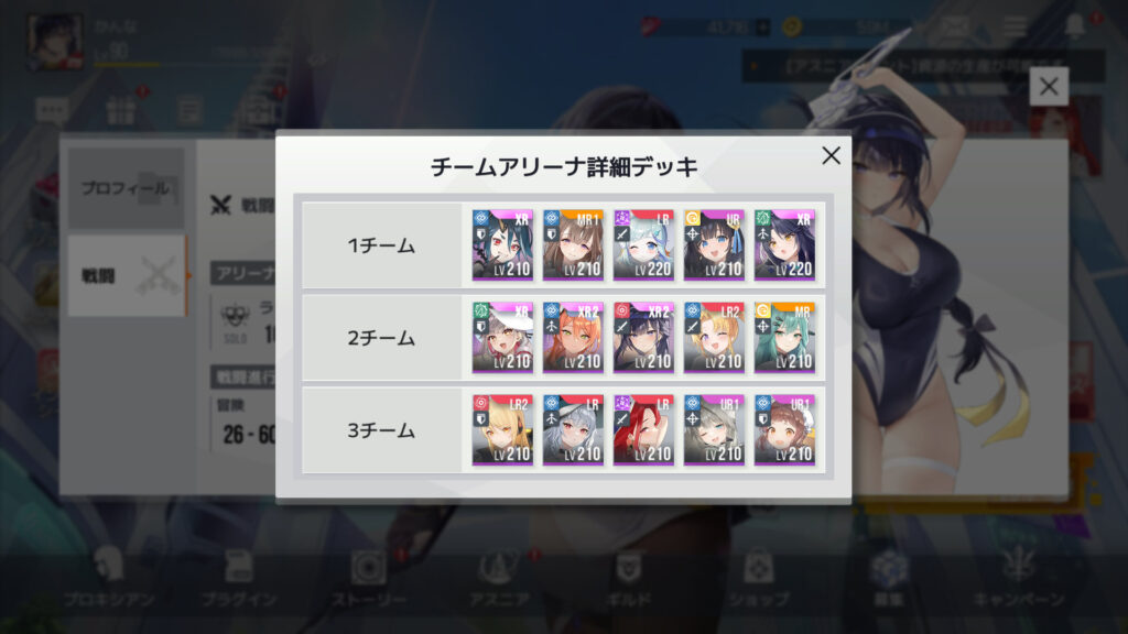 報酬の薄いチームアリーナはまぁ別にどうでもなんだが。アリーナの編成は少し考えないとなぁ。フレデリカを入れてディフェンダーを一枚にする方向かなぁ
