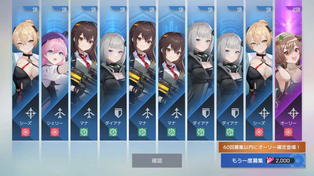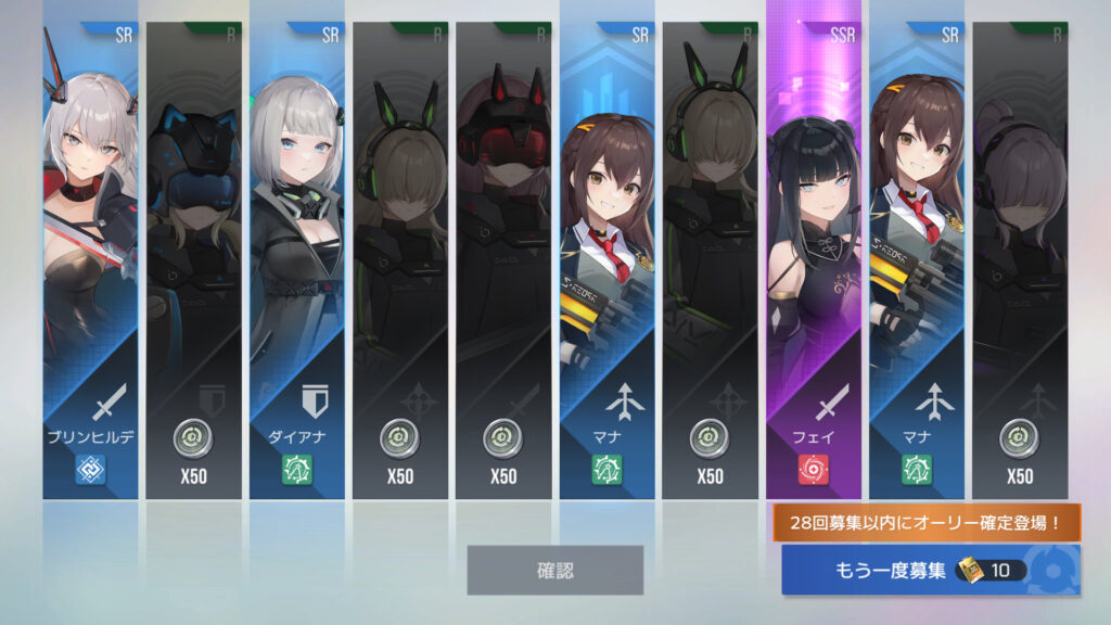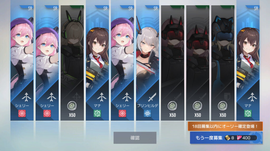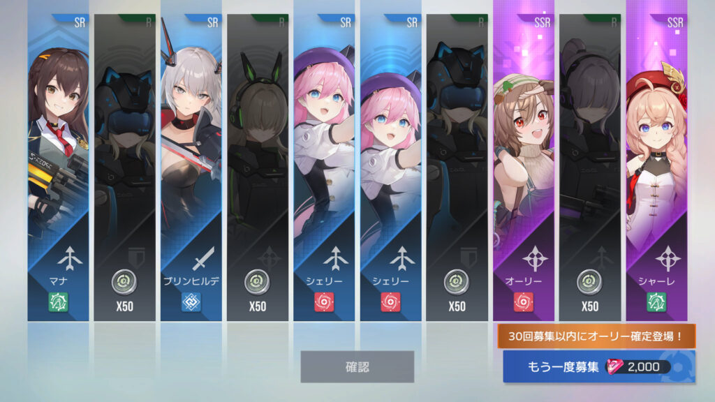 90連でオーリー2枚目、オーリーSSR1、シャーレ14枚目