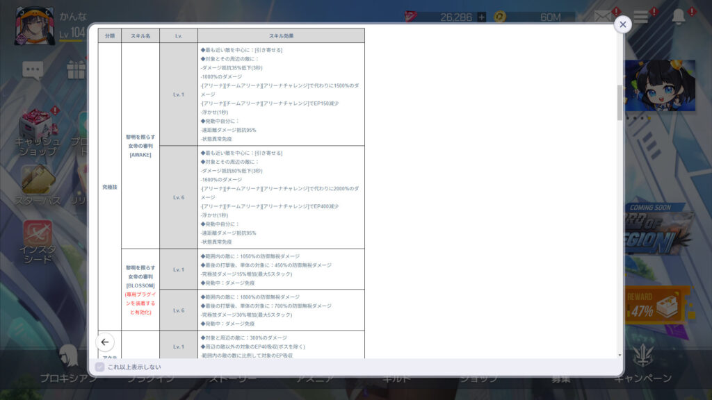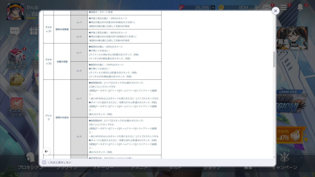 Lv.1だけ見ると、アクティブ1と2は若干だけど韓国版より弱体化されてるのかな。究極技、パッシブ、プラグインEXは同じ。Lv.4以上がどうなるかだなぁ