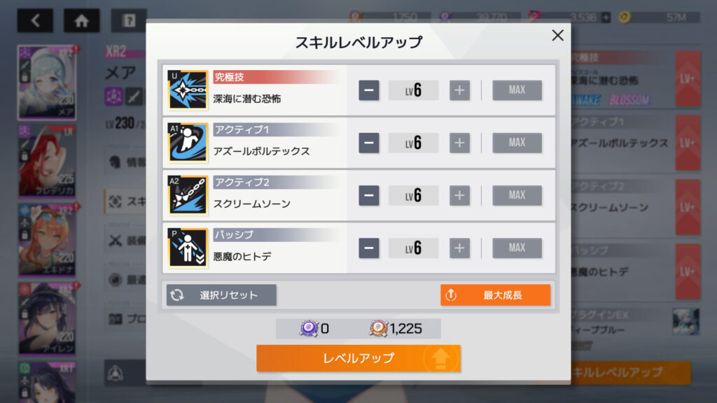 4スキルをLv.4からLv.6に上げるには上級スキルコアが1,225個必要ってことで、上級スキルコアが足りなくなるな…