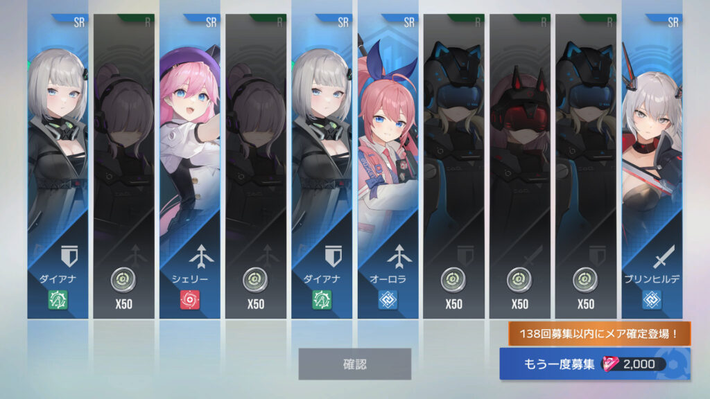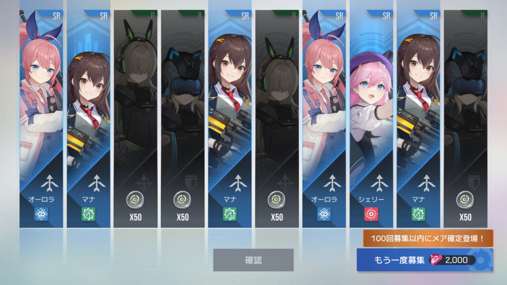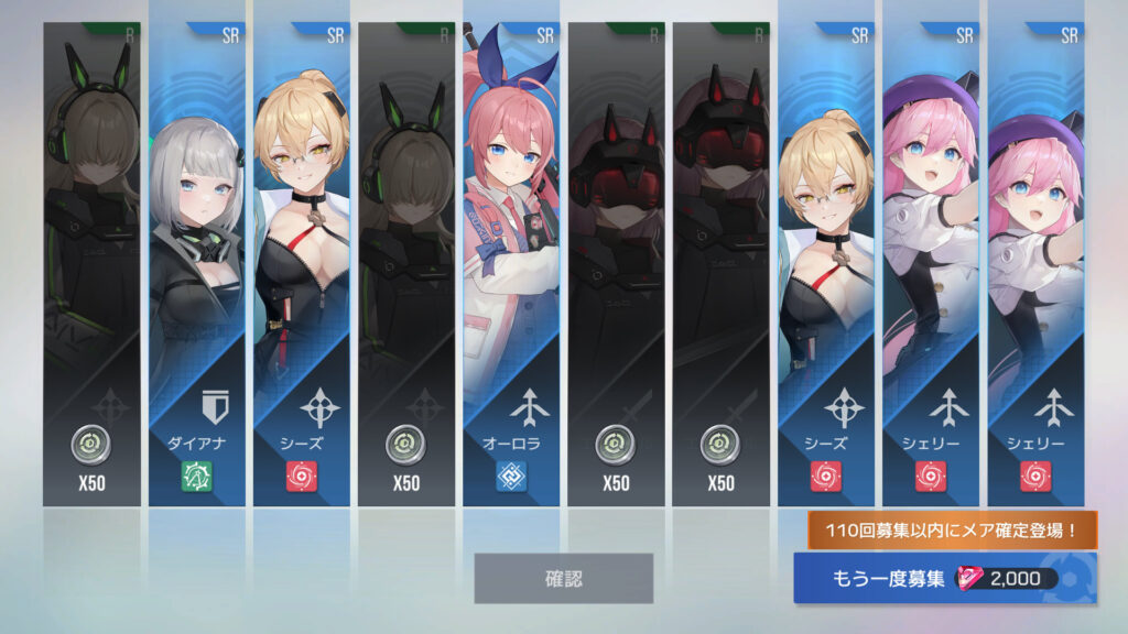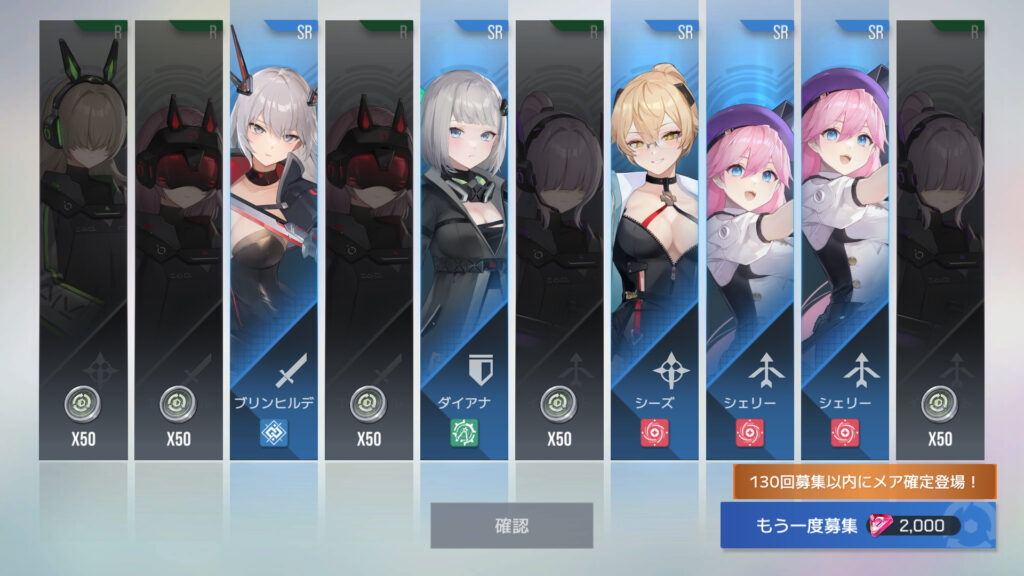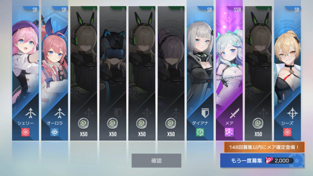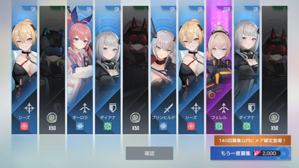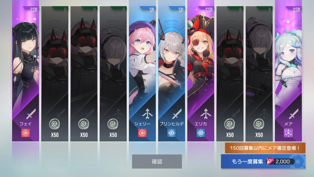 270連でフェイ6枚目、エリカ7枚目、メア11枚目、メアXR1