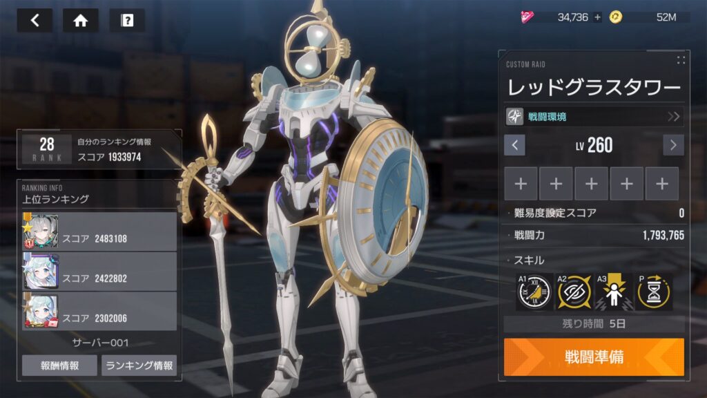カスタムレイドLv.260、ひとまずクリア。ポイント1,933,974で暫定28位、トップとの差は549,134ポイント。これがカスタム+クリア時間スコアの差