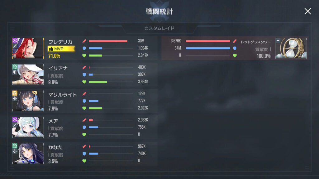 試しにフルカスタムでやってみたけど、ダメだった。フレデリカがいい感じにダメージ与えてたんだけど