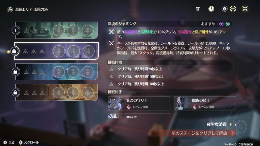 今期の逆境深塔。消滅、電導と気動、焦熱
