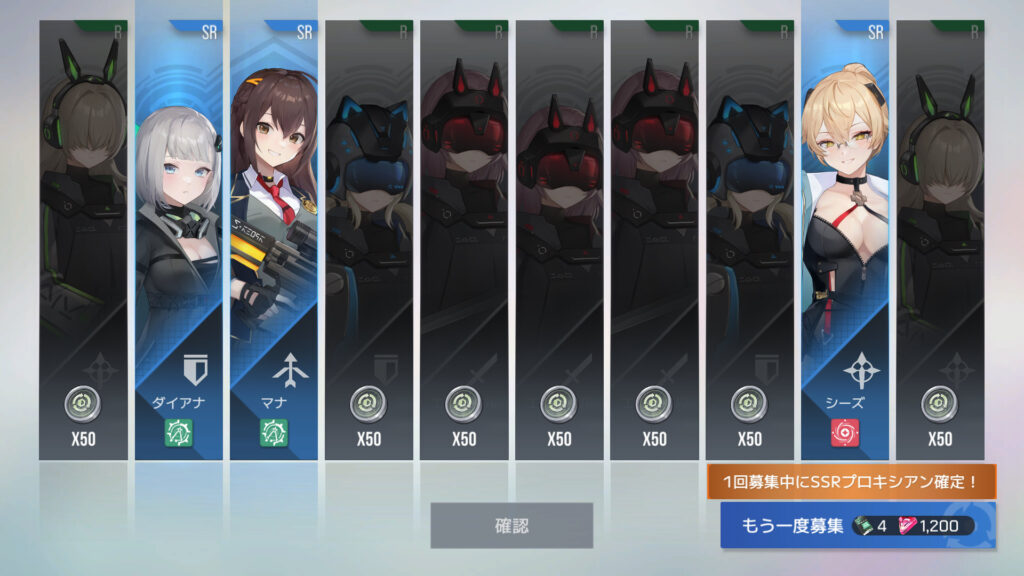 4個貯まったSSRプロキシアン選択箱でかなた5枚目~かなた8枚目を取って、かなたLR