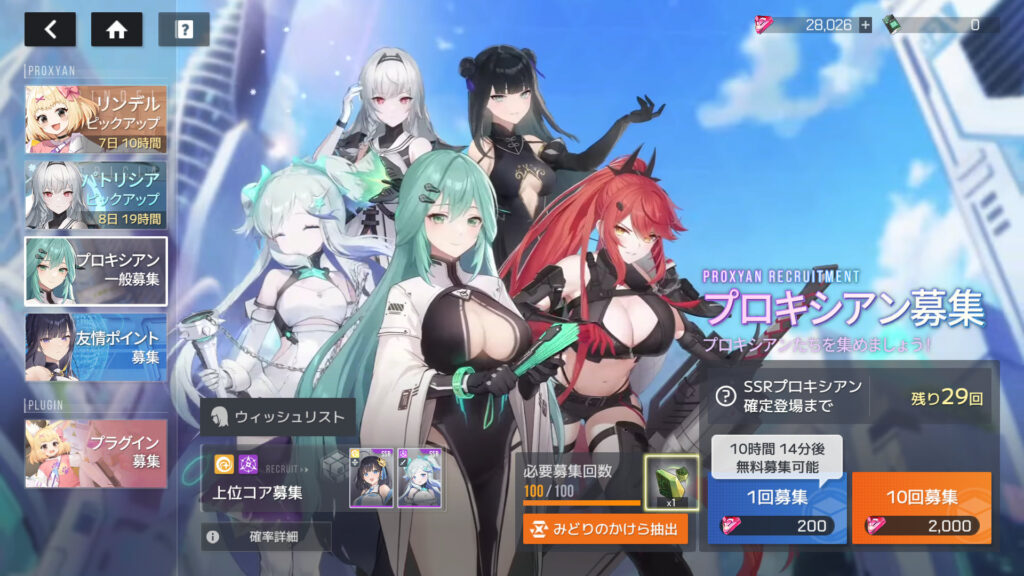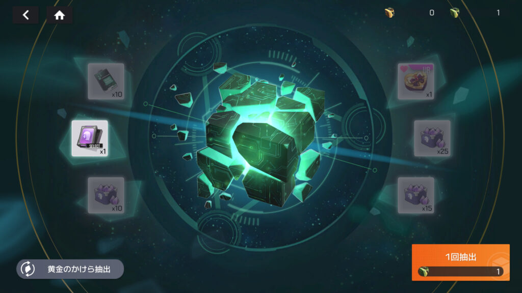 もう一回回してみどりのかけらゲット、抽出してSSRプロキシアン選択箱をゲット