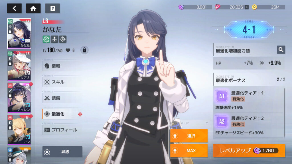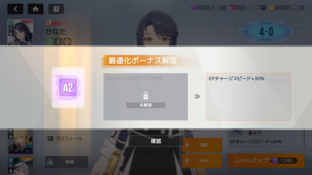 これでかなたはレベル上限240の最適化ボーナスA2解放