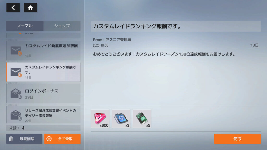 アスニアアクティブセンターの物資探索に参加をLv.2に上げた、けど、反映されるのは明日からかな…