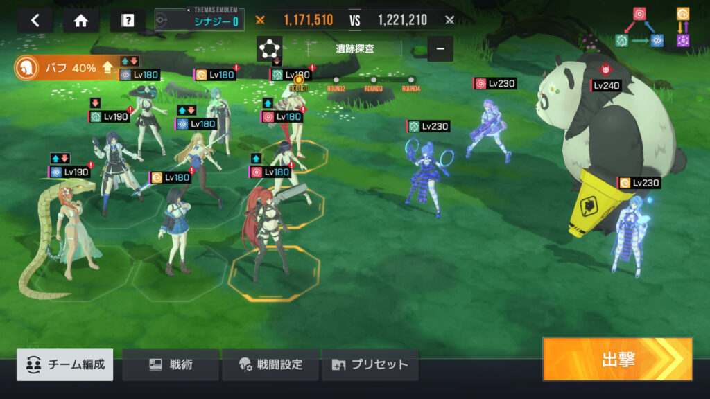 敵がLv.240だと、Round 1で3人死亡、Round 2以降は厳しかったんで、Lv.200に落とした。アンブロシアがRound 4で死んだだけでクリア