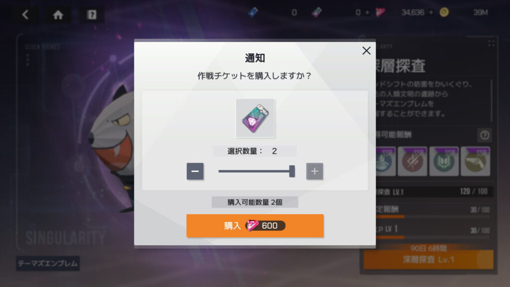 作戦チケットは1日3枚か…。追加2枚買うかどうかの差は大きいけど。毎日スタービット600個、月18,000個はさすがに厳しい。廃課金層向けだなぁ
