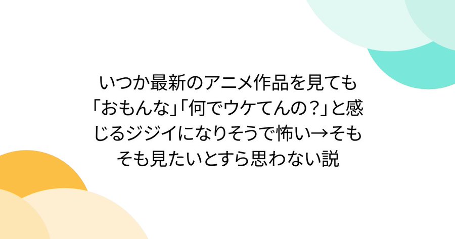 いつか最新のアニメ作品を見ても「おもんな」「何でウケてんの?」と感じるジジイになりそうで怖い→そもそも見たいとすら思わない説